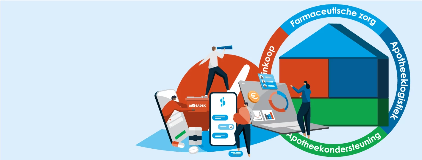 Zelfstandig openbare apothekers zijn een onmisbare schakel in de eerstelijnszorg in Nederland. Maar het zorglandschap verandert en daarmee ook jouw bedrijfsvoering. Met de vier bouwstenen van Mosadex leg je focus op je inkoop, logistiek, (gecontracteerde) zorg en word je met ondersteunde diensten verder ontzorgd. Dan sta jij als ondernemer in jouw kracht en kan jouw patiënt rekenen op de beste farmaceutische zorg, nu en in de toekomst.
